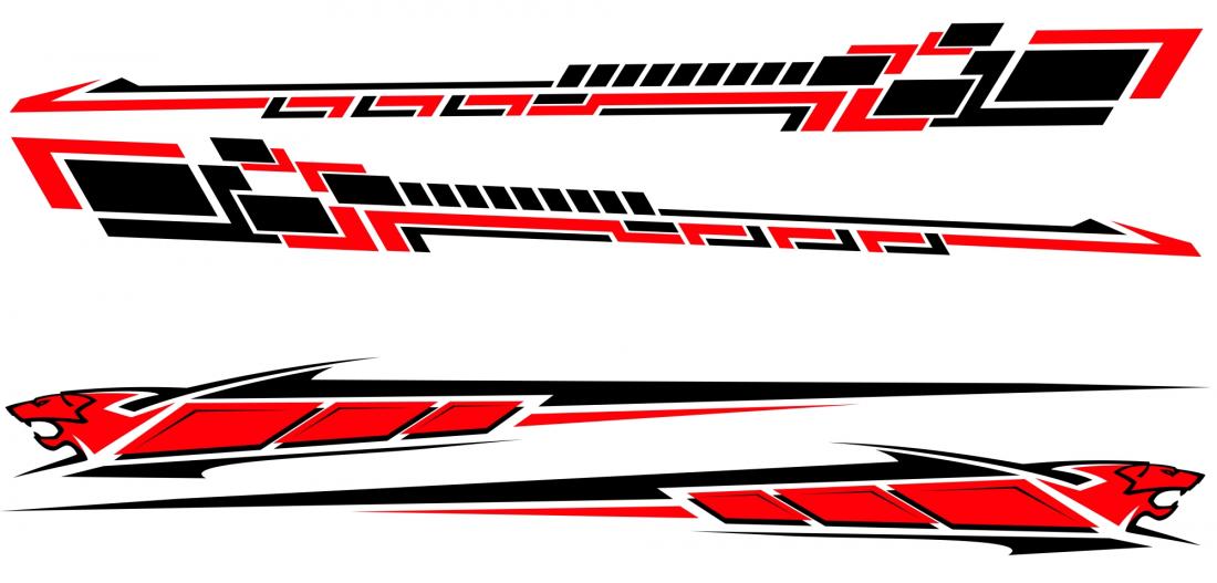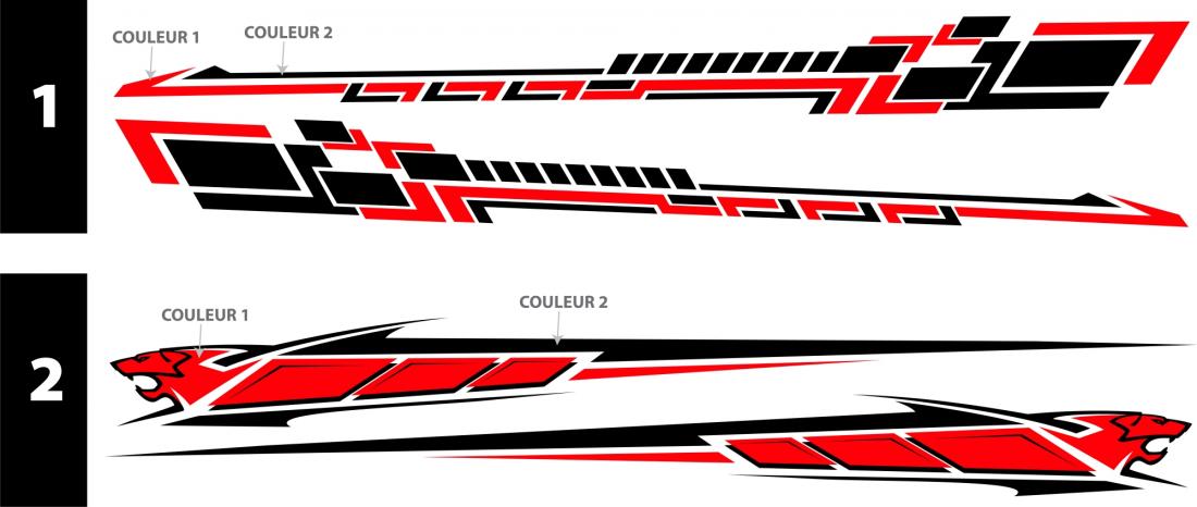 Adhésifs racing voiture 120x11cm (1 motif), 2 motifs inversés. Pour toutes surfaces lisse, mur, vitre, voiture. Visuel sur 1 seule face, souple et opaque. 2 couleurs au choix