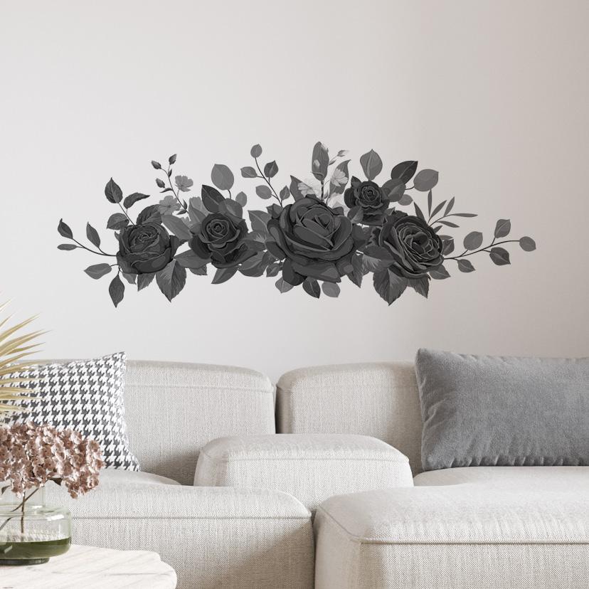 Décoration adhésive "Roses" . Format 120x80cm. Pour toutes surfaces lisse, mur, vitre. Visuel sur 1 seule face, souple et opaque.