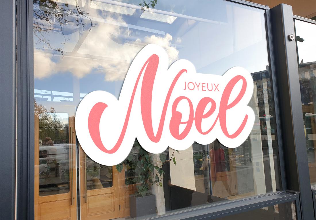 Décoration adhésive "Joyeux Noël", lot de 2. Format 100x34cm (l'ensemble). Pour toutes surfaces lisse, mur, vitre, repositionnable. Visuel sur 1 seule face, souple et opaque . Application facile, retrait sans résidus de colle. Tarif non négociable.