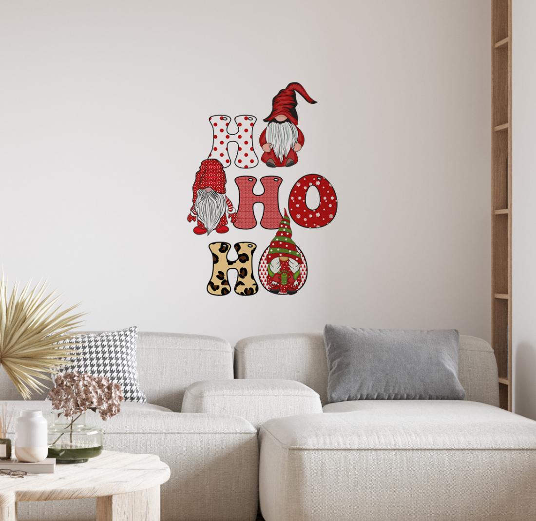 Décoration adhésive "Ho Ho Ho! de Noël" Lot de 2. Format 100x41cm l'ensemble. Pour toutes surfaces lisse, mur, vitre, repositionnable. Visuel sur 1 seule face, souple et opaque. Application facile, retrait sans résidus de colle. Tarif non négociable.